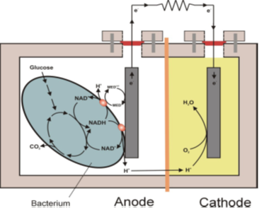 Các cảm biến sinh học dạng pin nhiên liệu vi sinh vật (microbial fuel cell-MFC): Pin nhiên liệu vi sinh vật là các hệ thống điện hóa trong đó vi sinh vật được tận dụng để tạo ra điện (như một dạng tín hiệu cảm biến) trong quá trình chúng phân giải các hợp chất hữu cơ hoặc chất thải (nguồn cho electron) [8] (Hình 1).