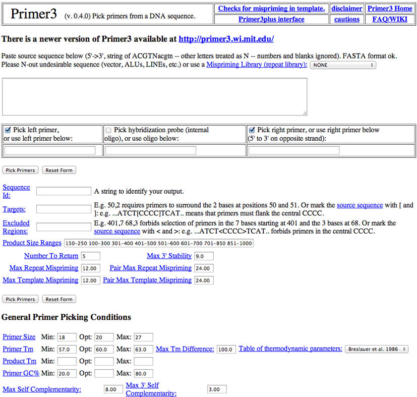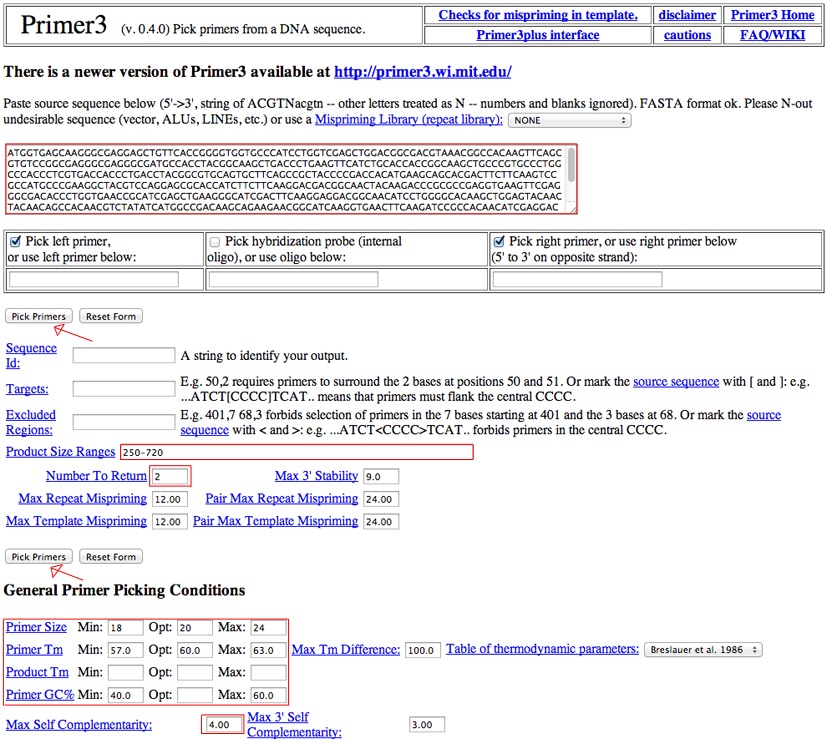 Sau đây là giao diện của chương trình Primer3 (http://bioinfo.ut.ee/primer3-0.4.0)